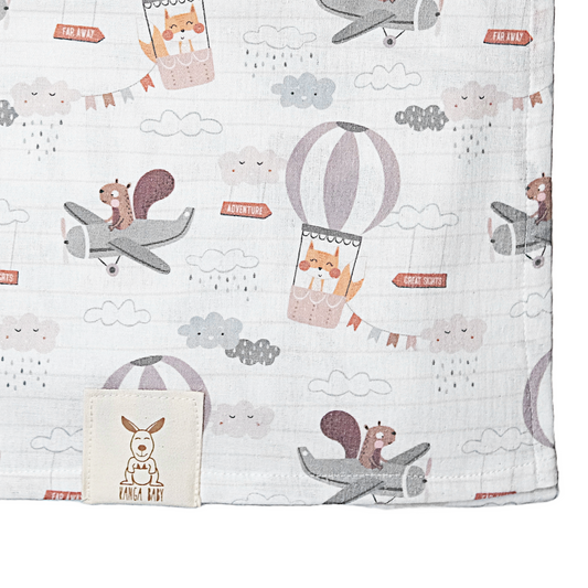Mussola in 100% cotone BIO - Animali, mongolfiere e aerei